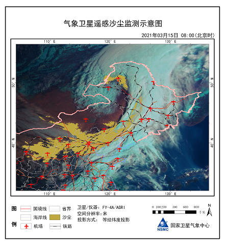 据气象卫星估算,可视的沙尘区面积约为46.6万平方公里,这也是近10年来影响我国最强的一次沙尘天气过程。