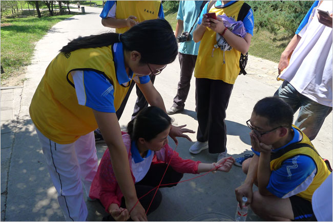 活动当天天气晴好,微风徐徐,大家一路心情愉悦。活动开始前,教练组织大家进行舒展准备活动,并分为2队,分别是飞跃队、胜利队。紧接着在教练的指导下,全体人员在队列展示、众星捧月、钉子传奇、穿越A4纸、解手链等活动上进行了比拼。这些活动有些需要团队合作,有的需要考验队员间的相互信任。活动过程中队员们充分发挥了各自的优势和特长,增进了团结协作能力。