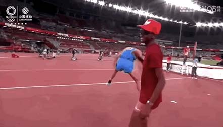 红衣服的巴希姆则是走向看台,在看到教练的一刻号啕大哭起来。