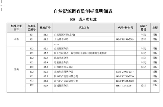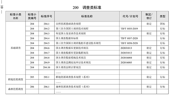 自然资源调查监测标准体系(试行)