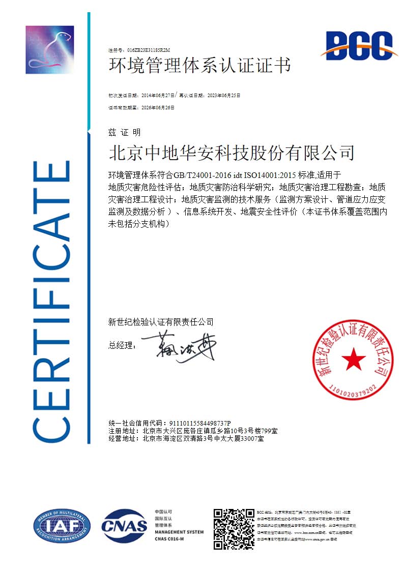环境管理体系认证证书
