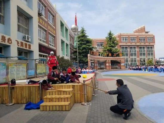 图为青岛红十字搜救队进入校园开展防溺水救援培训。(受访者供图)