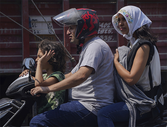 当地时间2023年2月22日,印度海得拉巴,高温天气,人们围上头巾遮阳。