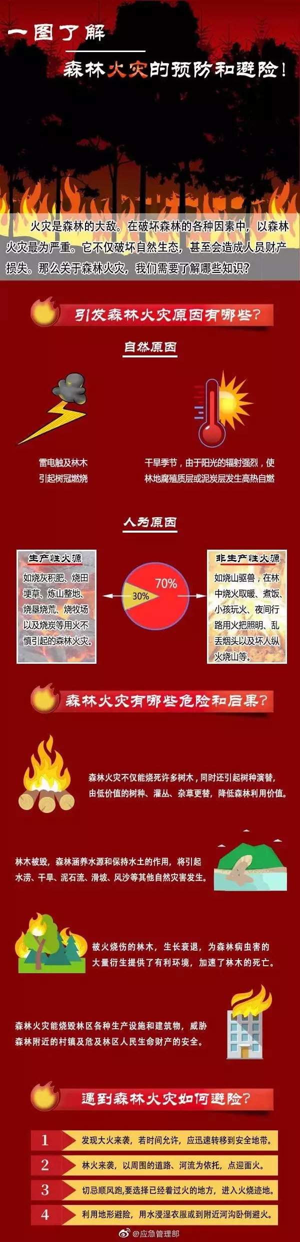 火灾是森林的大敌。在破坏森林的各种因素中,以森林火灾最为严重,它不仅破坏自然生态,甚至会造成人员财产损失。雷电、干旱高温、烧灰积肥、乱丢烟头等都是引发森林火灾的原因,我们应该如何预防避险?
