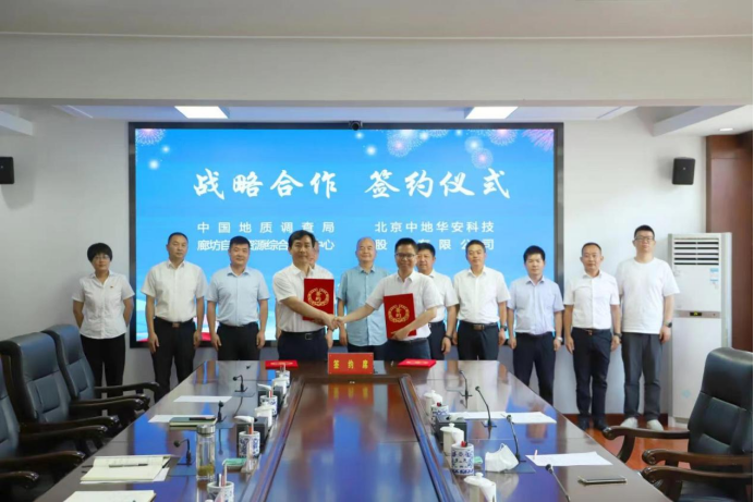 2023年6月27日,北京中地华安科技股份有限公司与中国地质调查局廊坊自然资源综合调查中心(以下简称“廊坊中心”)在廊坊签订战略合作协议,廊坊中心党委书记秦辉,中地华安高级顾问颜宇森出席签约仪式,并围绕扩大务实合作、推动共同发展进行座谈交流。