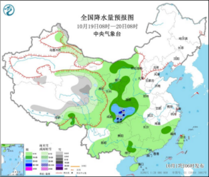 全国降水量预报图10月19日08时-20日08时(图片来源:中央气象台)