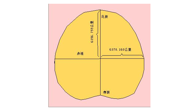 地球的形状呈梨形,赤道半径约为6378公里,两极半径约为6356公里(见图)。