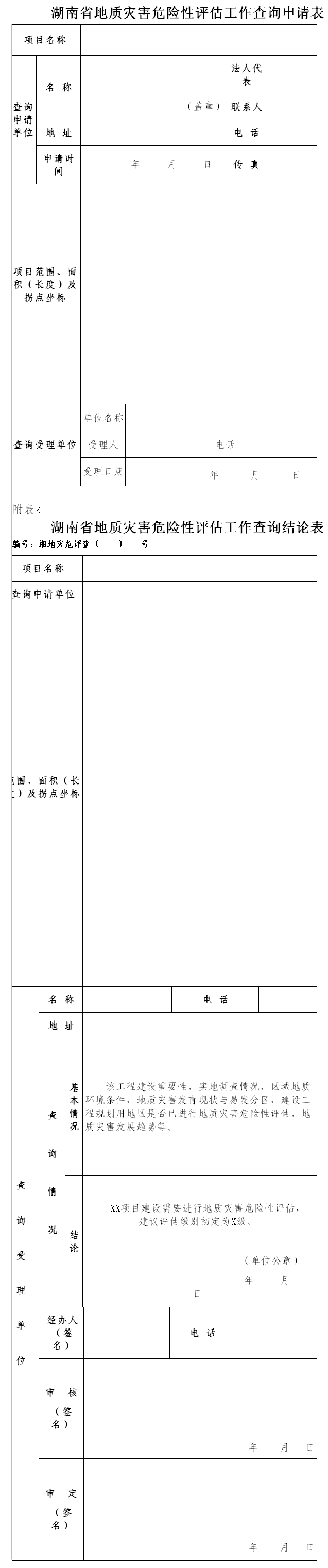 (2)湖南省地质灾害危险性评估工作查询结论表