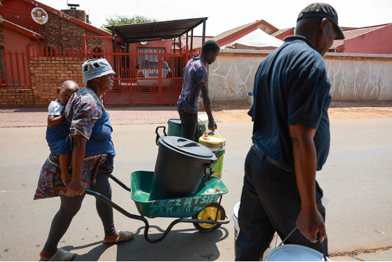 当地时间2024年10月15日,南非面临缺水危机,民众在市政水车边取水。
