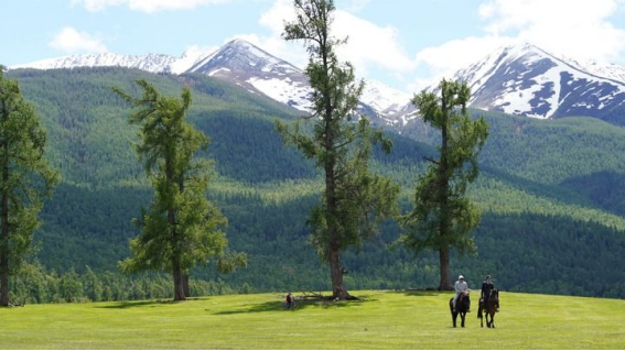 2024年6月6日,在新疆阿勒泰地区哈巴河县,游客在骑马游玩。新华社记者 阿曼 摄