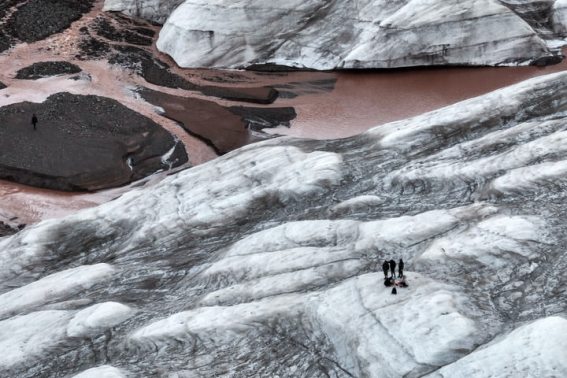 2024年7月25日,在青海省三江源区冬克玛底冰川,江源综合科学考察队员在探测冰川。新华社记者 伍志尊 摄