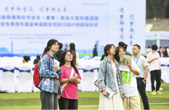 2024年4月17日,求职学生参加重庆市2024届普通高校毕业生(春季)就业大型双选活动。新华社记者 王全超 摄