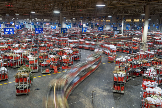 2023年1月31日,台车在昆明国际花卉拍卖交易中心运输鲜花。新华社记者 陈欣波 摄