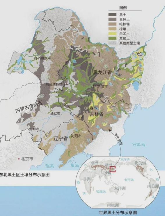 黑土的分布:黑土带广泛分布在世界各地,特别是在俄罗斯、美国、加拿大和中国的东北地区。中国的黑龙江、吉林、辽宁等地就有广泛的黑土区,是我国重要的农耕区之一。