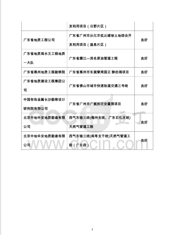 华安公司负责完成的《西气东输三线(梅州支线、广东石化支线)天然气管道工程地质灾害危险性评估报告》和《西气东输三线(闽粤支干线)天然气管道工程(广东段)地质灾害危险性评估报告》得到广东省地质灾害防治协会好评,获得良好奖。