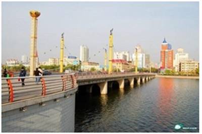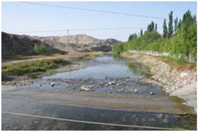 照片3 孔雀河由压气站向前流经库尔勒市桥