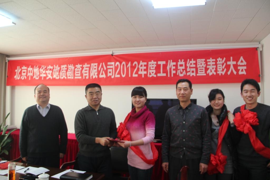 2012年12月29日,北京中地华安地质勘查有限公司召开2012年年终工作总结暨表彰大会,会议由华安公司总经理马志伟主持,中地华安公司在京员工出席了本次大会。