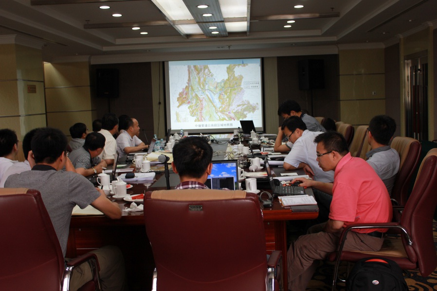 6月13日中国地质环境监测院在北京永兴花园饭店组织召开了十二五地质灾害防治科研项目启动会议,会上北京中地华安地质勘查有限公司介绍了中缅管道地质灾害防治工作开展情况,并和与会专家就线性工程地质灾害专业监测、预警预报等问题展开研讨,探索把国家公益性地质灾害防治科学研究和国家重大基础工程地质灾害防治工作紧密结合的路子,更好地服务于国民经济建设主战场。图为华安公司在会上做研究工作汇报。