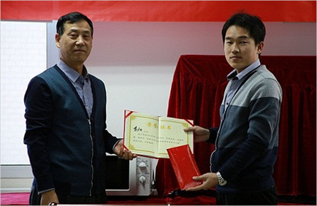 公司领导在大家热烈掌声中为“先进工作者、获奖人员颁发了证书和奖金,并号召公司全体员工向他们学习,在2015年度工作中创造辉煌