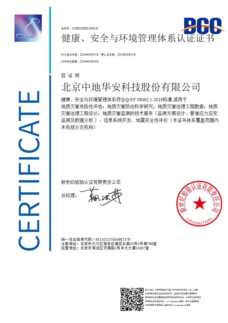 健康、安全与环境管理体系认证证书-Q/SY1002.1-2013标准