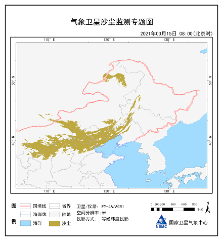 据气象卫星估算,可视的沙尘区面积约为46.6万平方公里,这也是近10年来影响我国最强的一次沙尘天气过程。