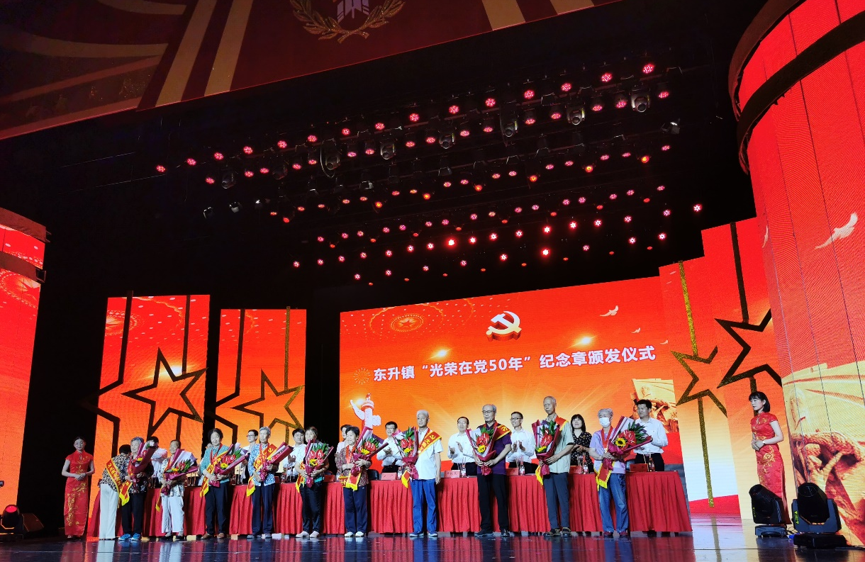 2021年6月20日,海淀区东升镇举办“奋斗百年路,启航新东升”“两优一先“表彰大会暨庆祝中国共产党成立100周年文艺演出,表彰165名“光荣在党50年”的老党员、102名东升镇优秀共产党员、20名东升镇优秀党务工作者以及26个东升镇先进基层党组织。