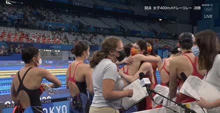 在现场等待那位战胜白血病的日本女选手池江璃花子。