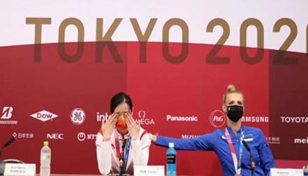 孙一文在夺得女子个人重剑金牌后的发布会上,因谈到自己的父亲而突然落泪。