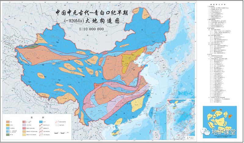 中国中新元古代(820Ma以前)大地构造图
