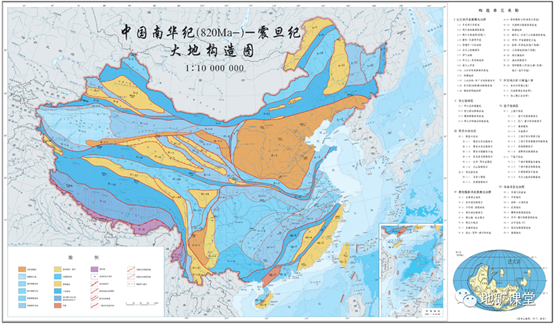 中国南华纪—震旦纪大地构造图