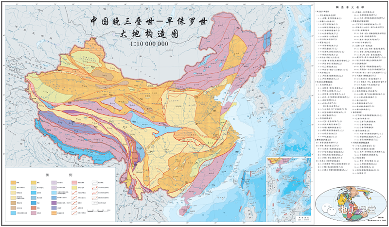 中国晚二叠世—中三叠世大地构造图