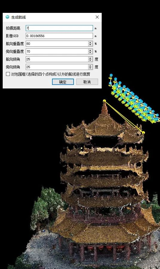 注释:仿地摄影是根据DSM的高程改变飞行高度。这样可以部分减少不同影像间比例尺的差异。但仿地摄影不会顾及地形或地物的坡度与坡向不同而改变摄影机的‘姿态’角。