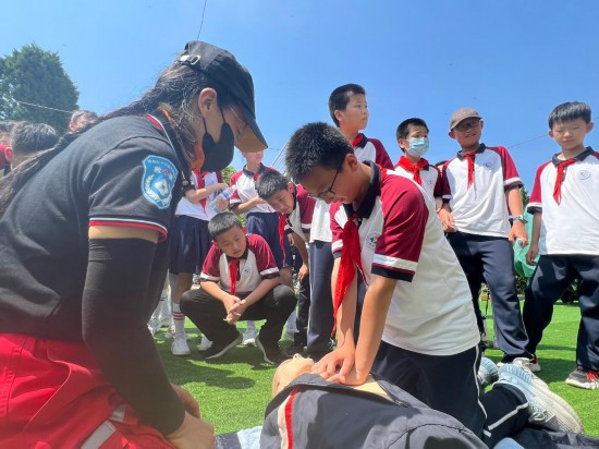 图为青岛红十字搜救队进入校园开展防溺水救援培训。(受访者供图)