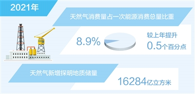 本报北京8月25日电 (记者丁怡婷)近日发布的《中国天然气发展报告(2022)》显示:2021年,我国天然气消费量占一次能源消费总量比重达8.9%,较上年提升0.5个百分点,主干天然气管道总里程达到11.6万公里。从消费结构看,工业用气、城市燃气、发电用气、化工化肥用气分别占天然气消费总量的40%、32%、18%、10%。