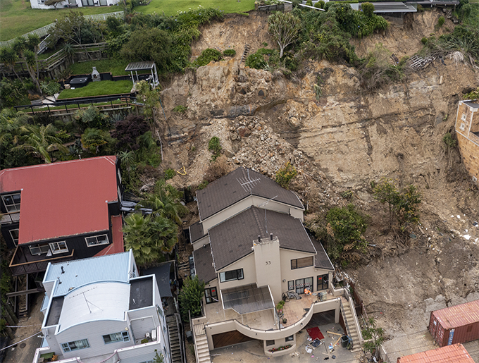 当地时间2023年2月22日,新西兰奥克兰,航拍被泥石流冲毁房屋。