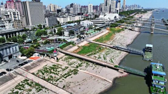 ▲在2022年应对长江流域严重气象水文干旱过程中,相关省份应用干旱灾害普查成果修订编制预案方案,科学制定调水措施,指导旱情监测评估并预测灾害发展趋势,为保障供水安全、粮食安全和生态安全等提供了有力支撑。图为2022年水位创历史同期最低的长江武汉江段。