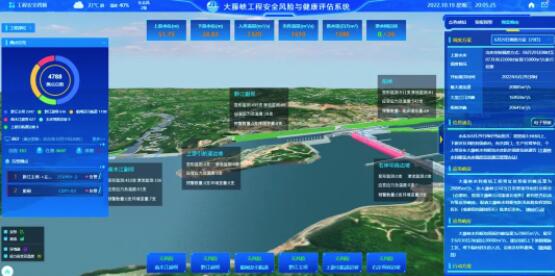 ▲将普查成果与现有数据、系统深入融合,研发水旱灾害风险模拟分析系统,应用于 2022年洪水风险研判、防洪工程调度、抗旱调水、灾害复盘等,取得良好效果。图为大藤峡工程安全风险与健康评估系统。
