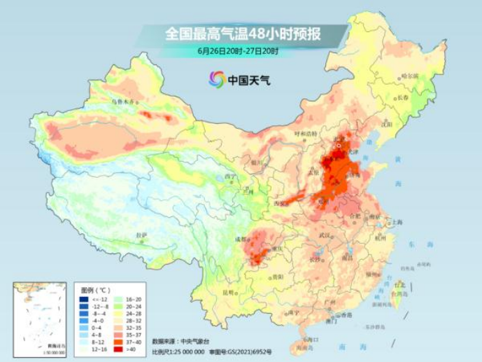 27日,长江中下游地区至华南地区的高温也开始发展,28日—30日,浙江、江西、湖南、福建、广东等地将出现大范围高温天气。