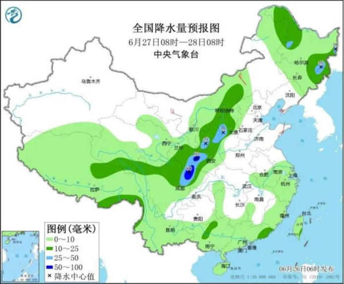 具体来看,中央气象台预计,明天,西北地区东部、四川盆地、内蒙古中部和东北部、山西中北部、黑龙江西部和东南部、吉林东北部、广东东南部等地部分地区有中到大雨,其中,陕西西南部、四川盆地北部等地部分地区有暴雨。