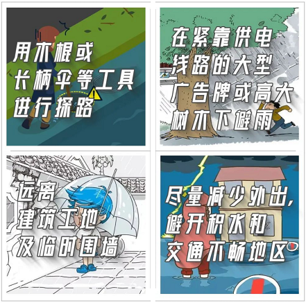答案:暴雨天气情况复杂,极易发生漏电和触电事故,行人出行应远离供电线路附近的高大树木或大型广告牌下,在涉水途中如果感到脚下发麻,应立即止步后退。