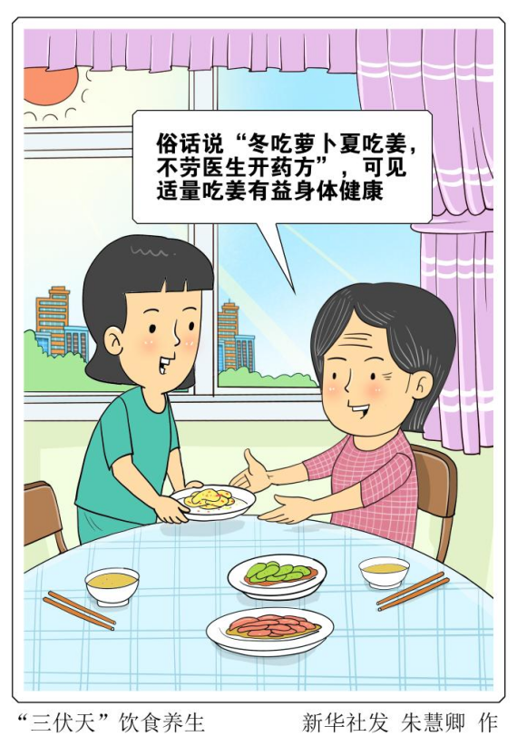“想要祛湿,可以将红豆、薏米、芡实、茯苓、赤小豆、大麦等煮水饮用。薏米、芡实、茯苓有利湿的功效,红豆可以理气,大麦有健脾利尿、清热解暑、平胃止渴等功效。”历飞表示,“三伏天”养生也适合吃姜,驱寒扶阳。“俗话说‘冬吃萝卜夏吃姜,不劳医生开药方’,可见适量吃姜有益身体健康。”