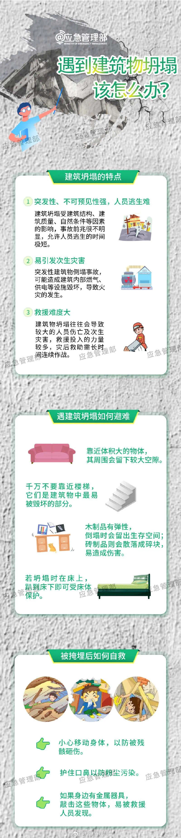 7月24日上午10时许,齐齐哈尔市第三十四中学校体育馆楼顶坍塌事故最后一名失联人员找到,已无生命体征。建筑物坍塌具有突发性强、人员逃生难、易引发次生灾害、救援难度大等特点。万一遭遇建筑物坍塌,我们这样做能降低伤害,并增加获救几率。
