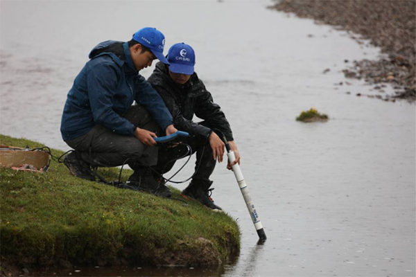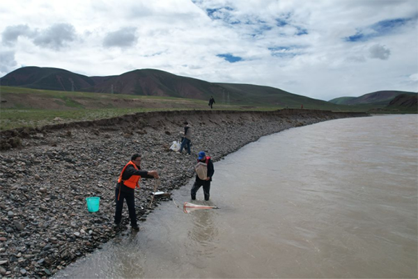 来自长江科学院河流研究所的科考队员徐志成和杨绪海,每到一个采样点就采集河道床沙和悬沙样品,测量河宽、水深、比降、流速,对比此前科考观测数据,分析长江源区河道水沙输移特性和河床演变情况。
