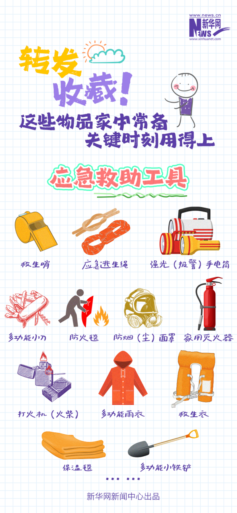 手电筒、救生哨、应急逃生绳、瓶装水、饼干、罐头、创客贴、碘伏棉棒……发生灾情时,自救是最迅速有效的。日常居家,应准备哪些应急物品?转发收藏这份“应急包”,关键时刻用得上!