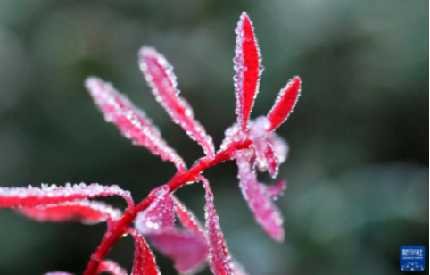 云南省迪庆藏族自治州香格里拉市,植物上结了霜(图片来源:新华社)