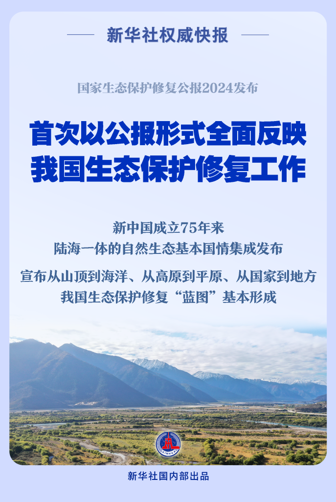 国家生态保护修复公报2024正式发布。这是我国首次以公报形式全面反映全国生态保护修复工作。