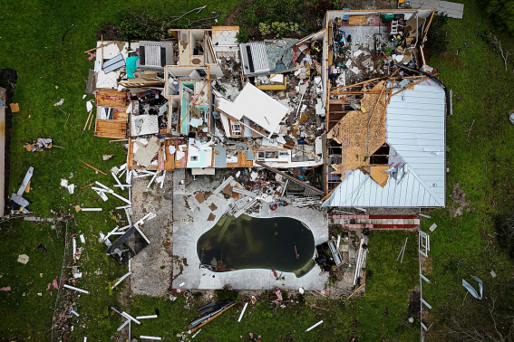 当地时间2024年10月11日,美国佛罗里达州圣露西港,飓风米尔顿过后被摧毁的房屋。