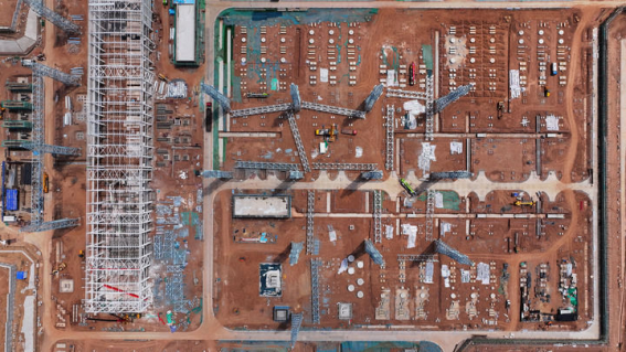 2024年7月10日,“宁电入湘”宁夏中宁换流站工程正加紧施工。新华社记者 王鹏 摄