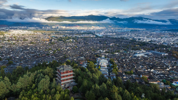 2024年11月8日,丽江古城日落风光(无人机照片)。新华社记者 胡超 摄