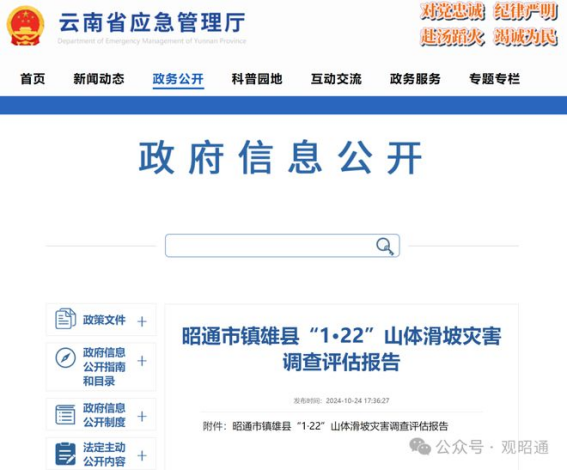 文章来源说明:文章来源于云南省应急管理厅公布的《昭通市镇雄县“1·22”山体滑坡灾害调查评估报告》,详细信息请点文后阅读全文。